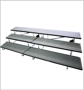 Midwest Folding's 3 tier riser modules can easily be arranged in sets to create your own custom riser configuration. 3 tiers not enough? Add on an optional 4th level for additional capacity!