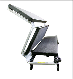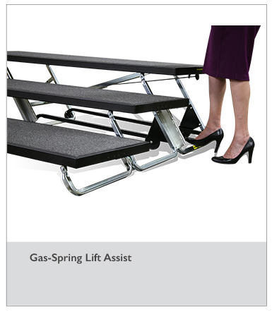 The TransFold standing choral riser is ready to go wherever your choir performs. Built-in wheels make it easy to roll the TransFold unit from the classroom to the auditorium or up stairways and on to a bus or van. Upon arrival at the performance venue, your TransFold risers set up in seconds, so that they will be ready when you are. Midwest's exclusive, gas-spring assisted design allows the unit to open with moderate foot pressure, taking the strain out of set up. This also ensures a safe, controlled motion when folding the unit for transportation and storage.